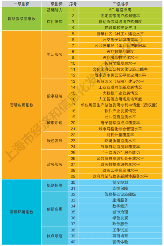 在 上海智慧城市发展水平评估报告(简) 中,给出了上海市智慧城市发展水平评估指标,每一项指标可对应到一个(类)智慧城市业务功能。