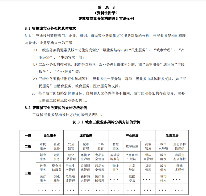 在 GBT 36333-2018 智慧城市顶层设计指南 中,给出了智慧城市业务架构分类方法示例,遗憾的是不全。