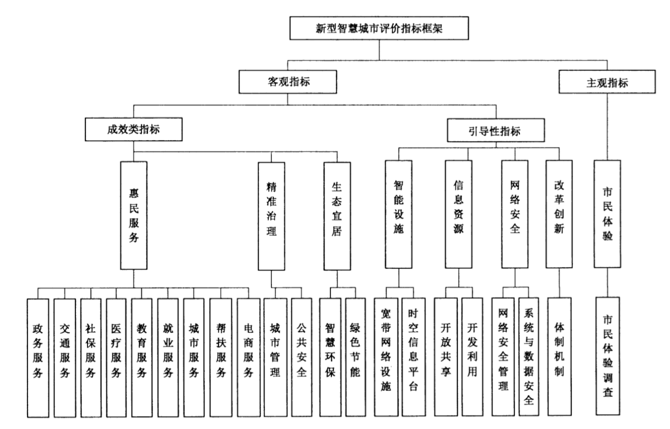 在 GBT 33356-2016 新型智慧城市评价指标 中定义了智慧城市评价指标框架,每一个评价指标可映射为智慧城市中的一个功能。