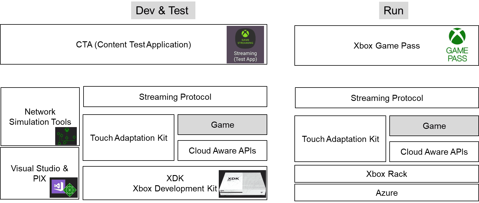 - 云游戏技术栈与Xbox Console游戏技术栈一致(Console Native),并提供TAK,存量游戏无需修改即可云化。